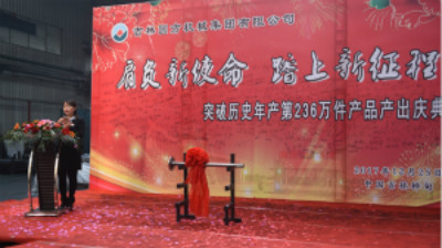 歲幕天寒,在寒冬臘月大雪紛飛,漫山遍野一片銀色日子里。集團(tuán)公司綜合制造廠房?jī)?nèi)熱火朝天、氣氛高漲。12月25日上午,集團(tuán)公司以“肩負(fù)新使命,踏上新征程”為主題,突破歷史年產(chǎn)第236萬(wàn)件產(chǎn)品產(chǎn)出慶典在這里隆重舉行。這一天對(duì)于圓方人而言是一輝煌喜慶、值得銘記的日子,注定成為圓方發(fā)展歷程的一個(gè)重要節(jié)點(diǎn)。集團(tuán)公司董事長(zhǎng)鐘景旭、總經(jīng)理張學(xué)良及班子成員,全體管理干部和員工代表200多人,共同見(jiàn)證了這一歷史時(shí)刻。這是輝煌的時(shí)刻,又是新征程的起點(diǎn),圓方人將昂首挺胸,闊步前行,踏上新的歷史征程,續(xù)寫輝煌的明天。